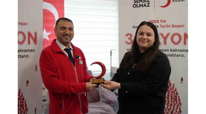 "Teşkilatımızın bir mensubunun genç yaşta 11 kez kan vermesi, 3 milyonuncu ünite bağışçı olması bizleri çok sevindirdi, seni tebrik ediyorum. Gençlere örnek bir davranış, personelimize de örnek oluyorsunuz."